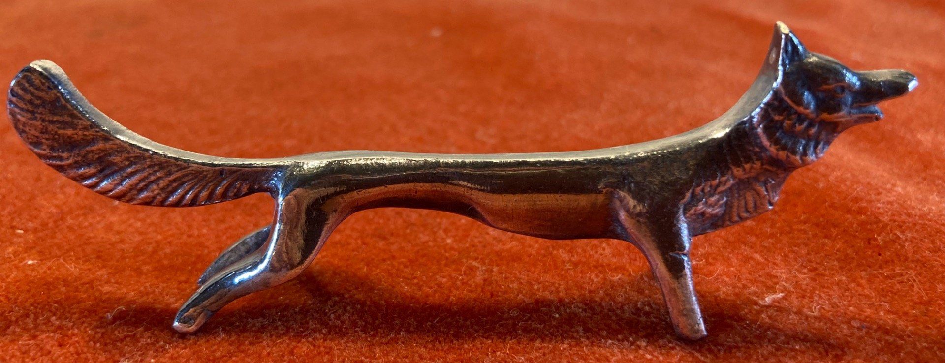 10 port couteaux animaux, 2 lièvres, 3 renards, 5 teckels en métal argenté. L 9 cm