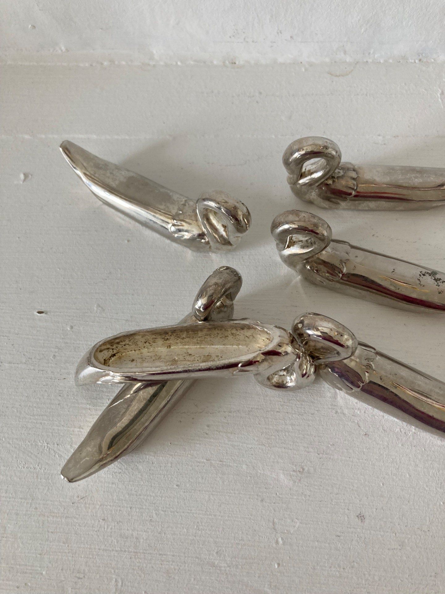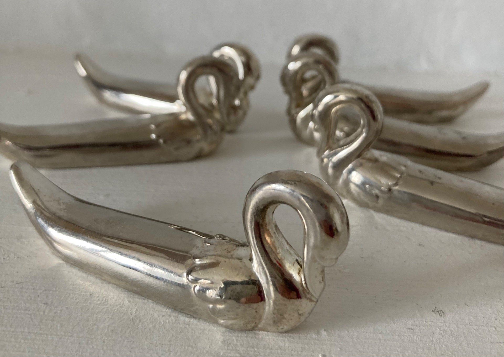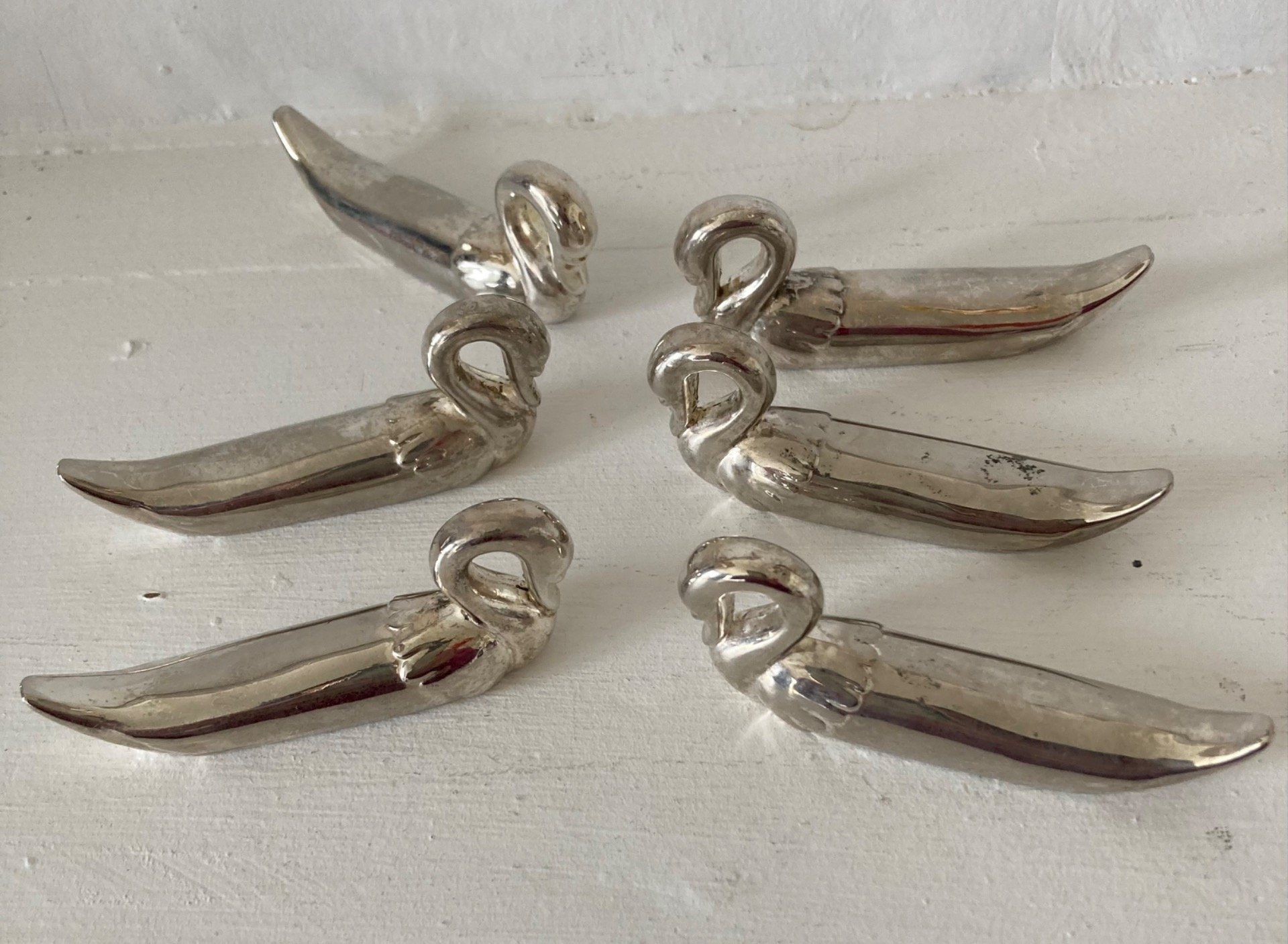 6 portes couteaux Cygnes en métal argenté. 7 cm. 1970/80.