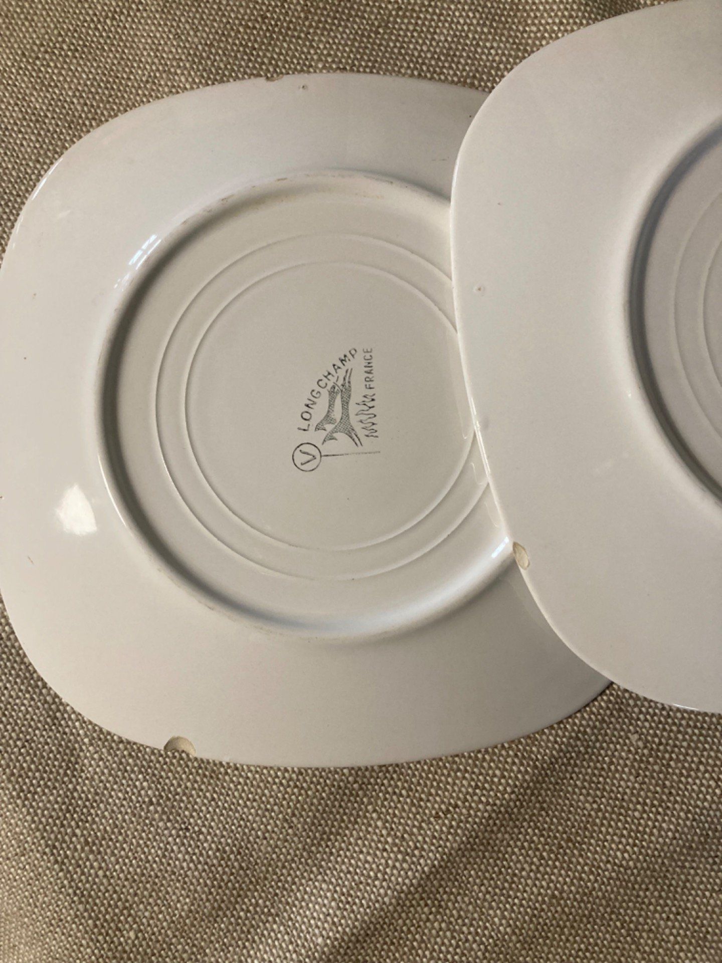9 assiettes longchamp à décors de faisans, bécasse et perdreaux dont 2 avec des ébréchures derrière ( ci joint la photo). Dim 22 cm
