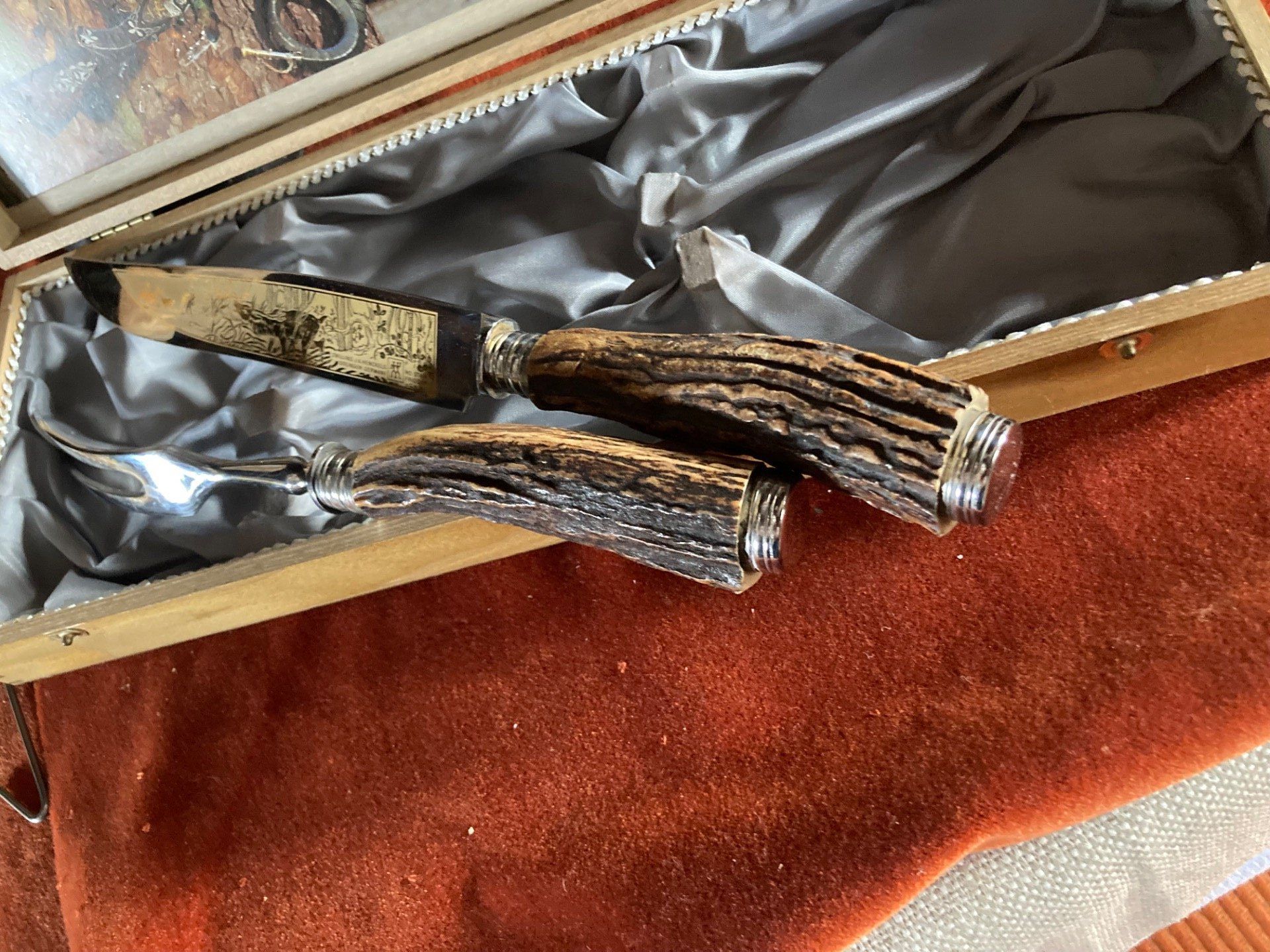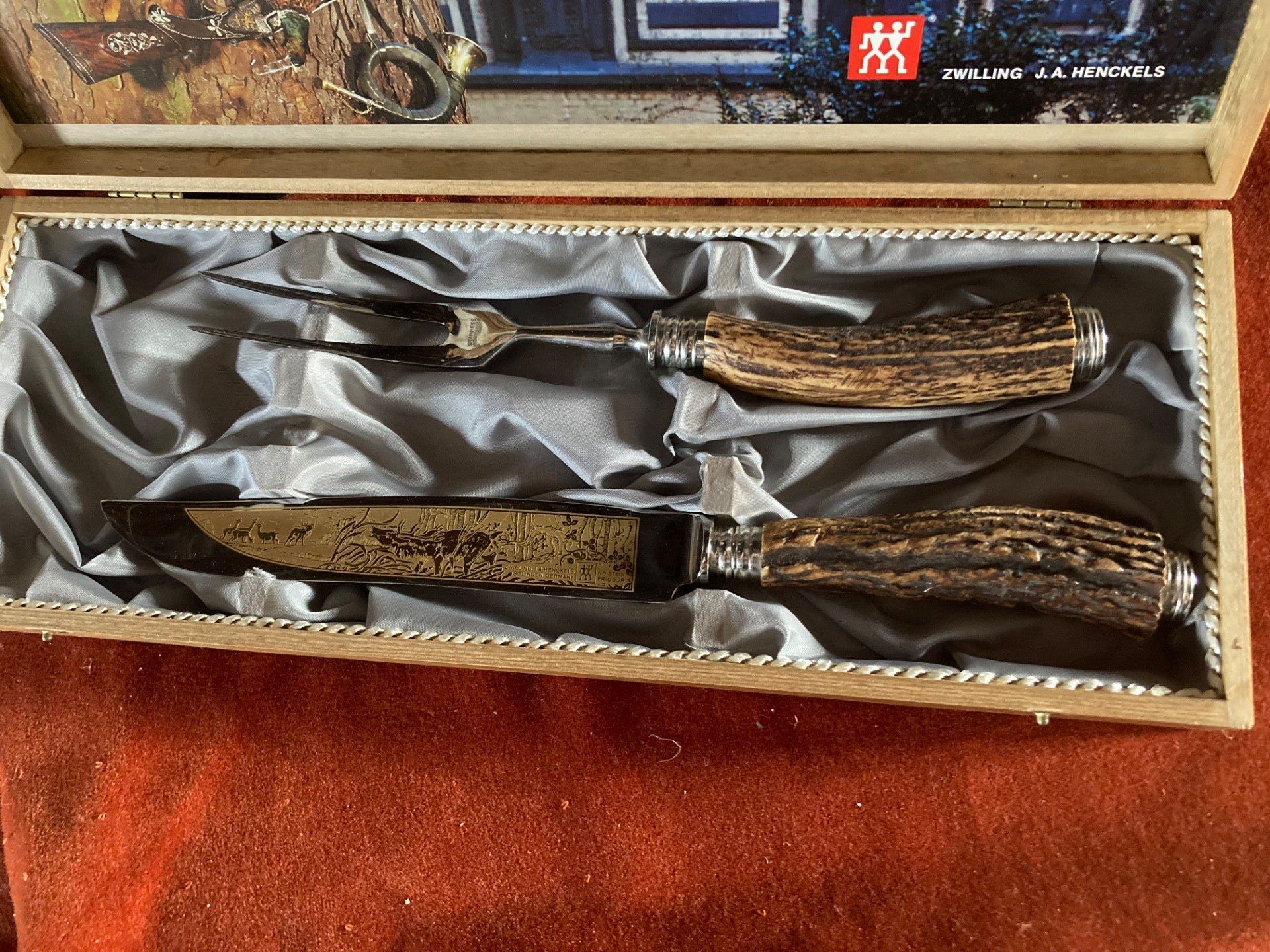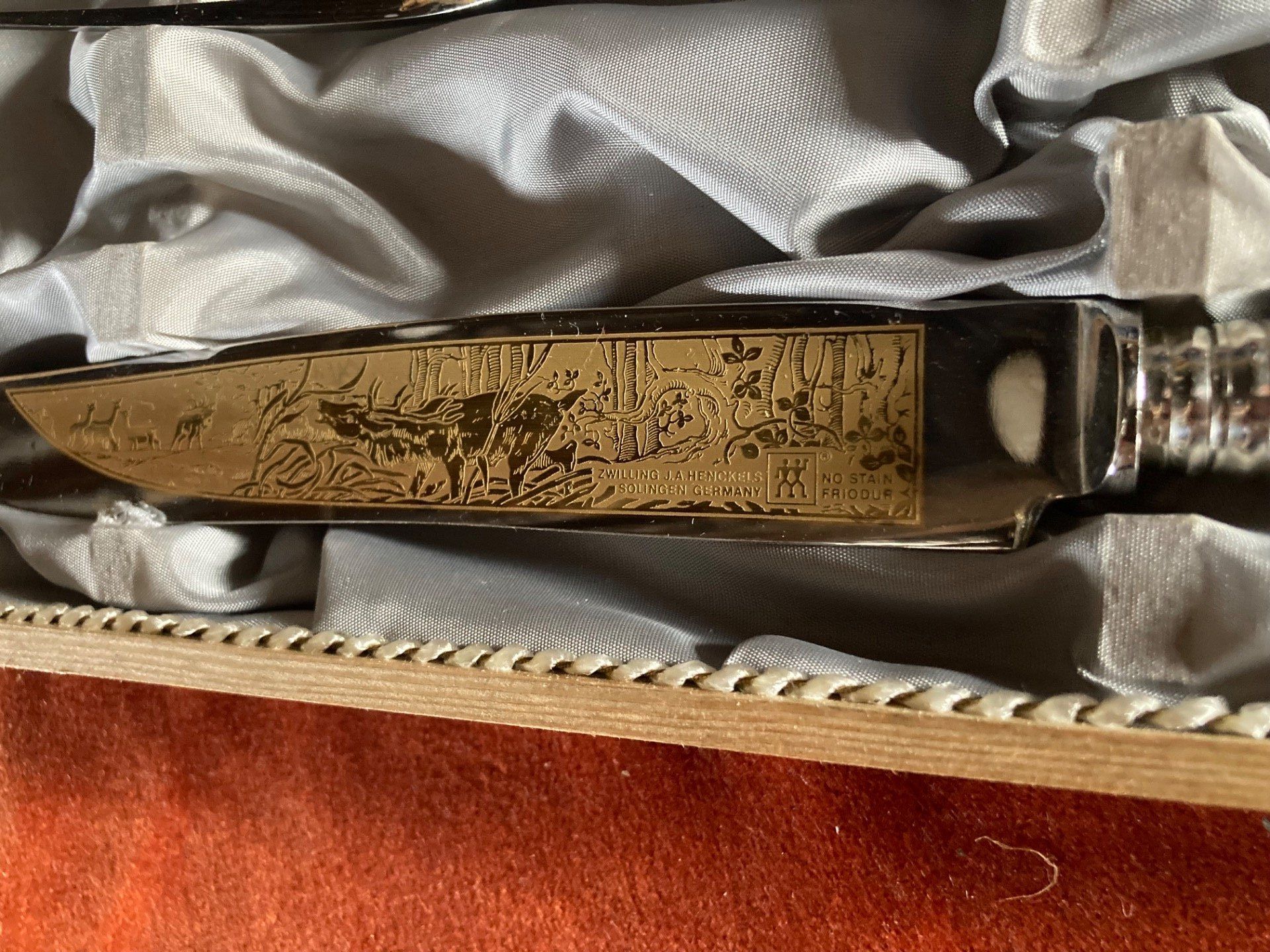 Couvert à decouper manche corne Zwilling JA Henckels. Lame inox 19 cm. Bon état.