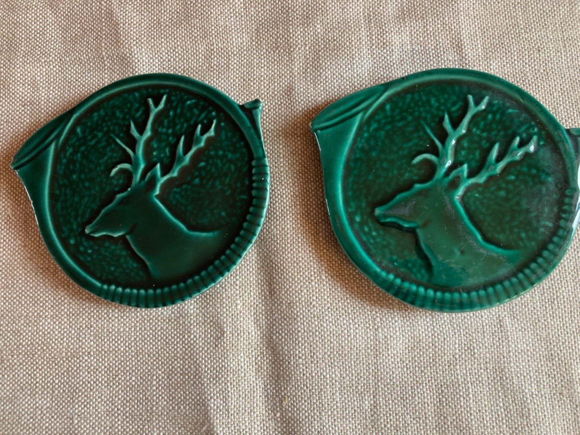 Dessous de bouteilles faïence verte à décor de cerfs.