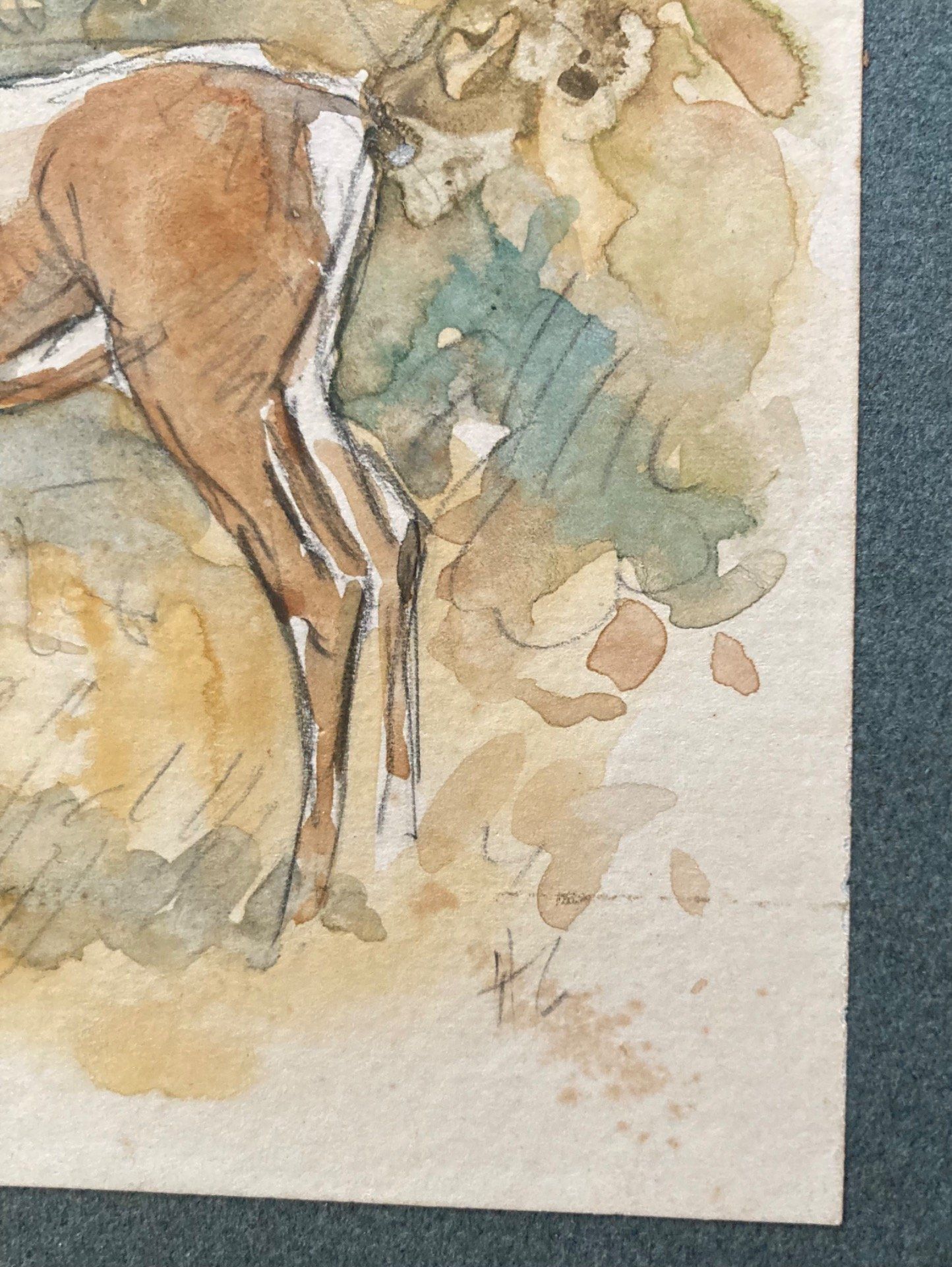 Henri Camus ( 1893-1989) Aquarelle d une biche. Monogramme en bas à droite.