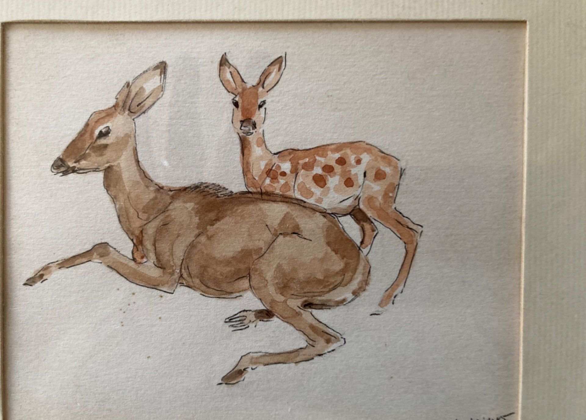 Henri Camus. (1893-1989). Aquarelle d une biche et son faon.