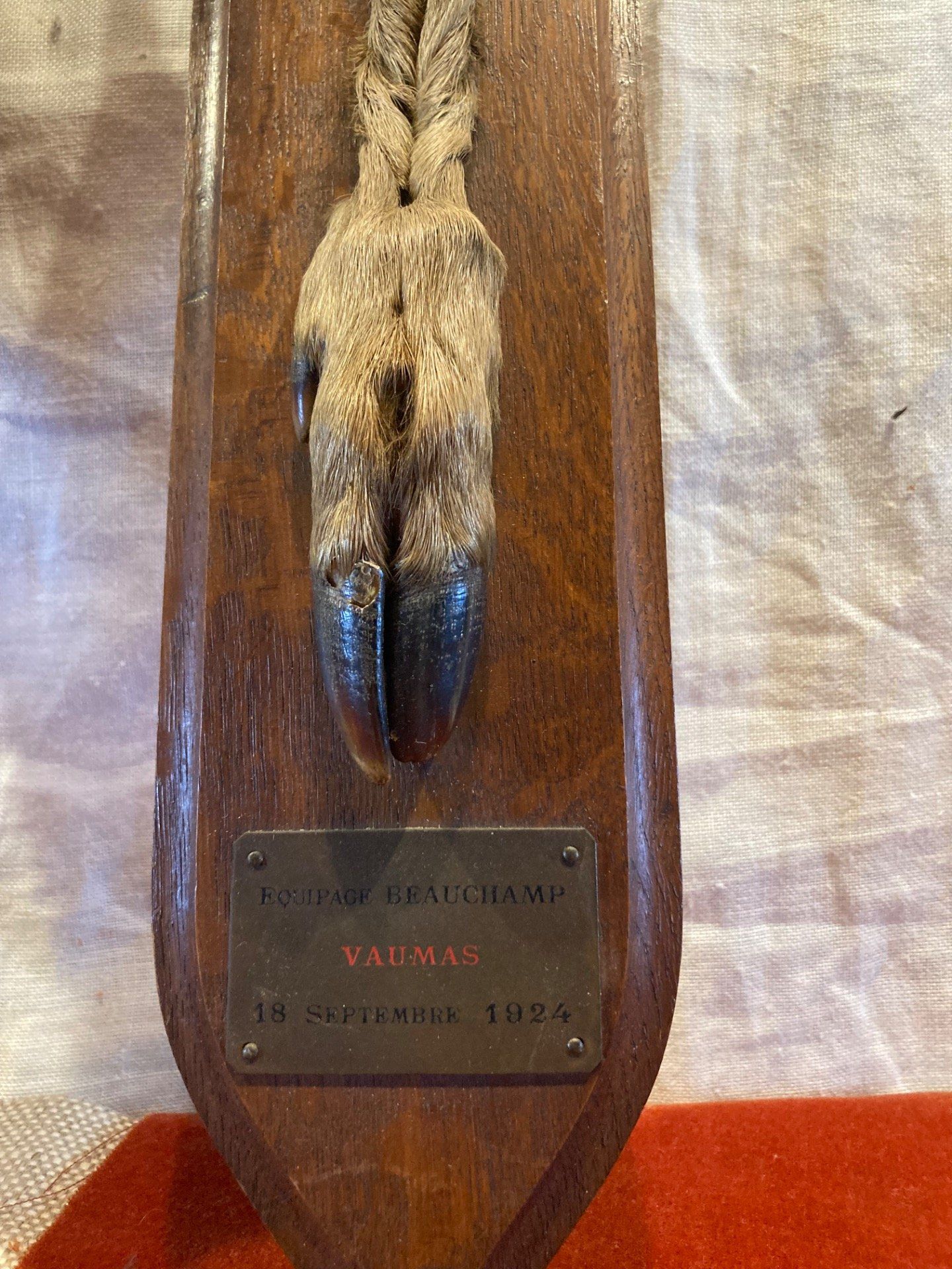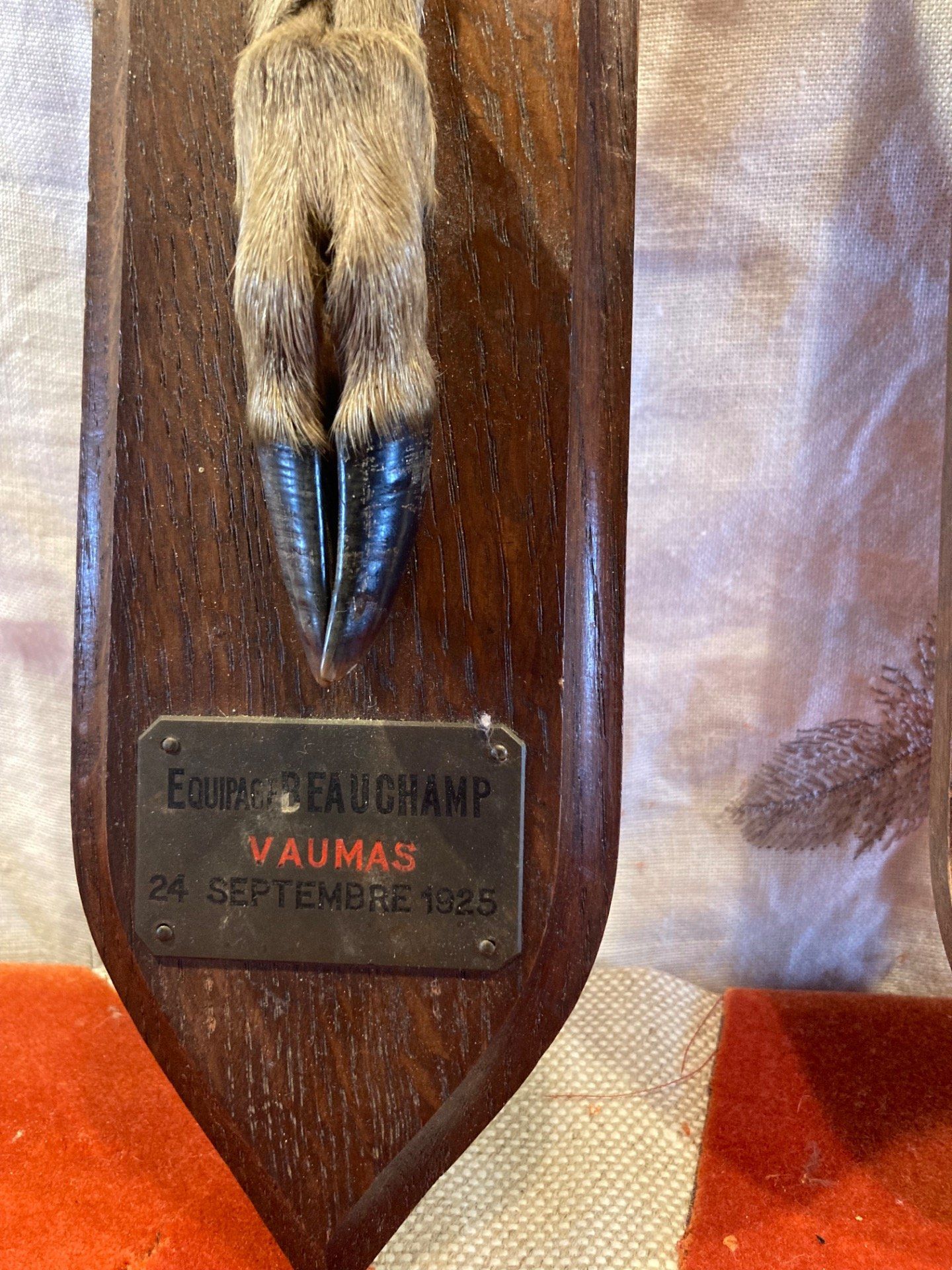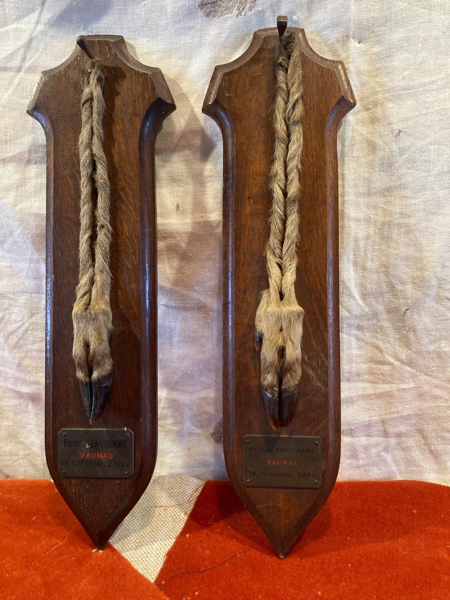Paire de pied d Honneur de chevreuil Équipage Beauchamp Vaumas 24 sept 1925 et 18 sept 1924