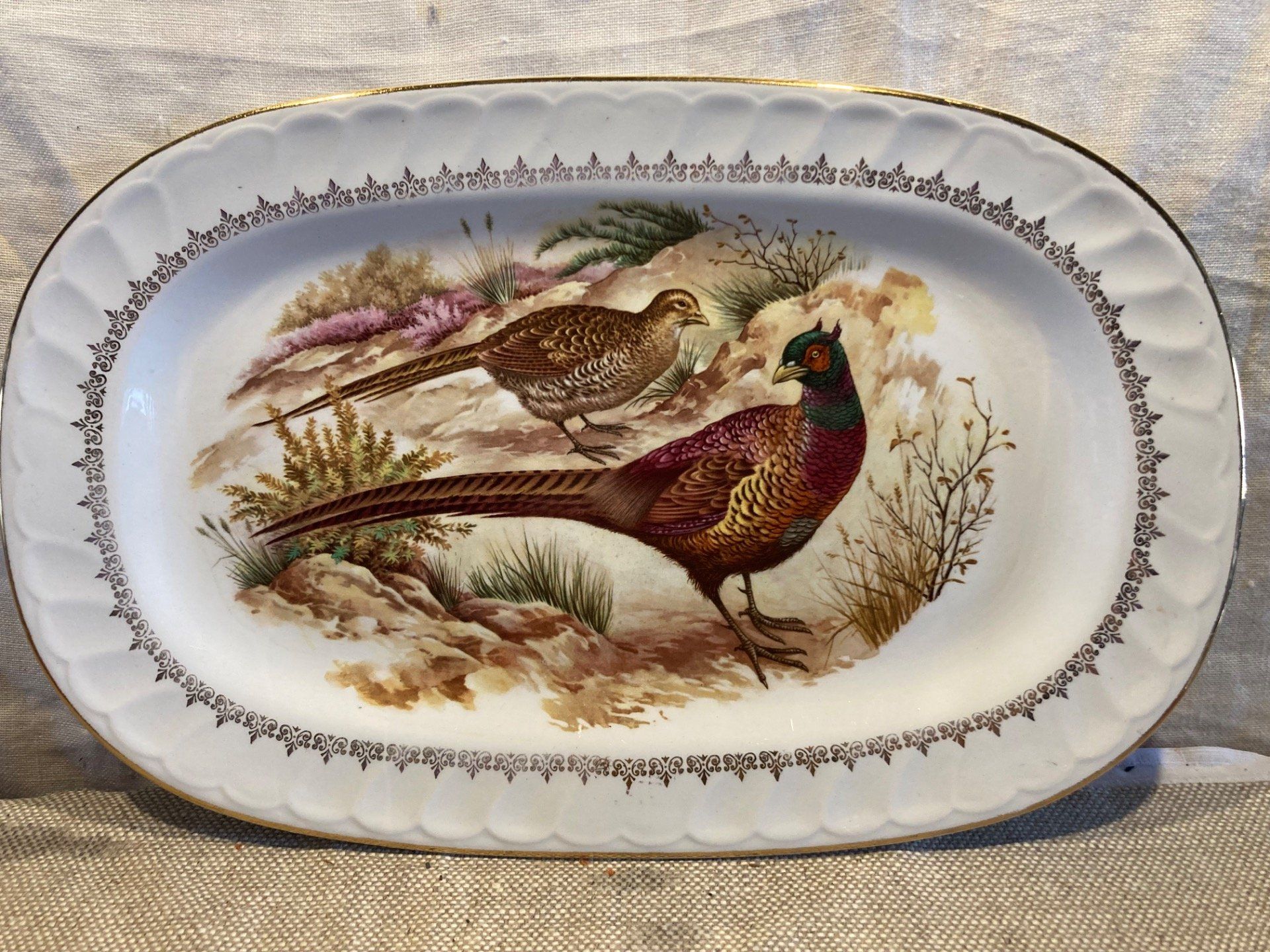 Plat faisan porcelaine à décor de faisans.