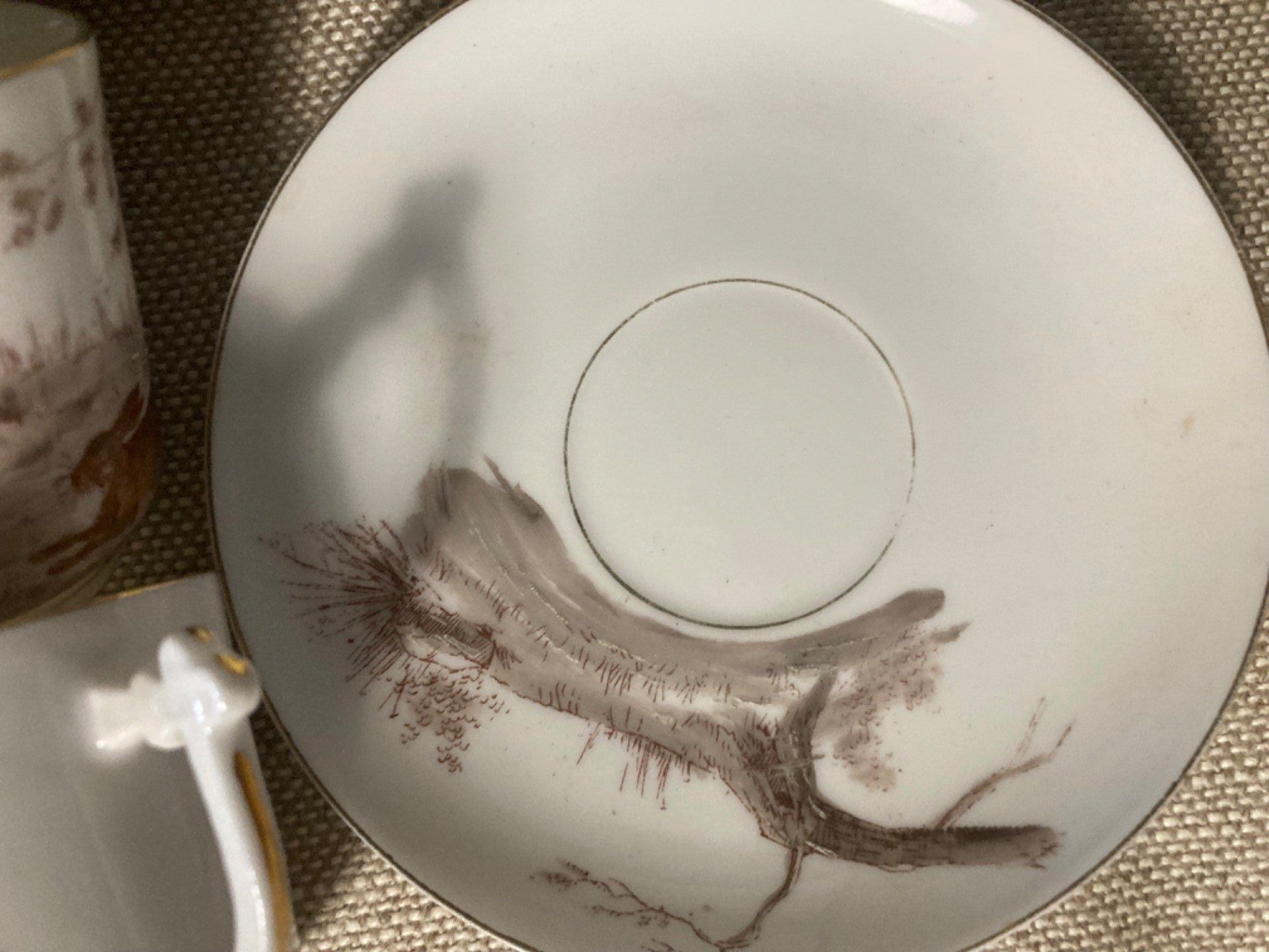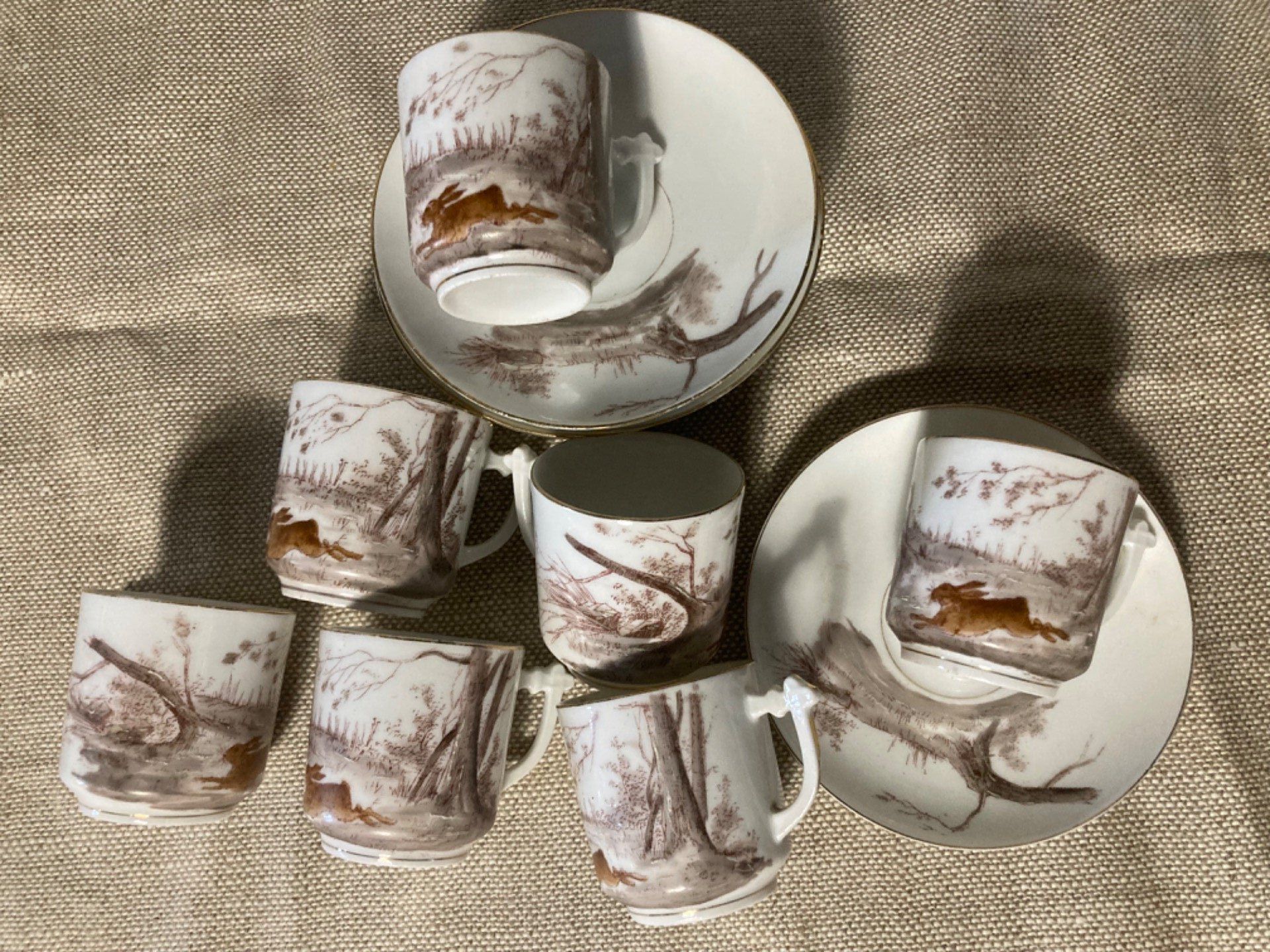7 tasses à café décors lièvre et 6 sous tasses en porcelaine 24 € l ensemble